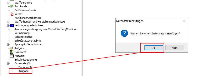 Um einen neuen Ausgangsbeleg hinzuzufügen, klicken Sie in der Navigatorstruktur bitte doppelt auf den Unterpunkt "Ausgabe" und bestätigen die nachfolgende Abfrage mit [Ja].