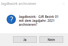 Bestätigen Sie die Meldung mit [Ja], um den Jagdbezirk ab dem Jahr XXXX zu archivieren.