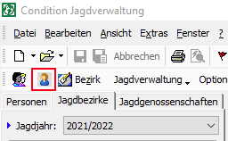 Um die Archivierung eines Jagdbezirks rückgängig zu machen, öffnen Sie den Bezirk mit einem Doppelklick über den Quickfinder oder mit Hilfe der gekennzeichneten Schaltfläche auf dem nachfolgenden Screenshot.