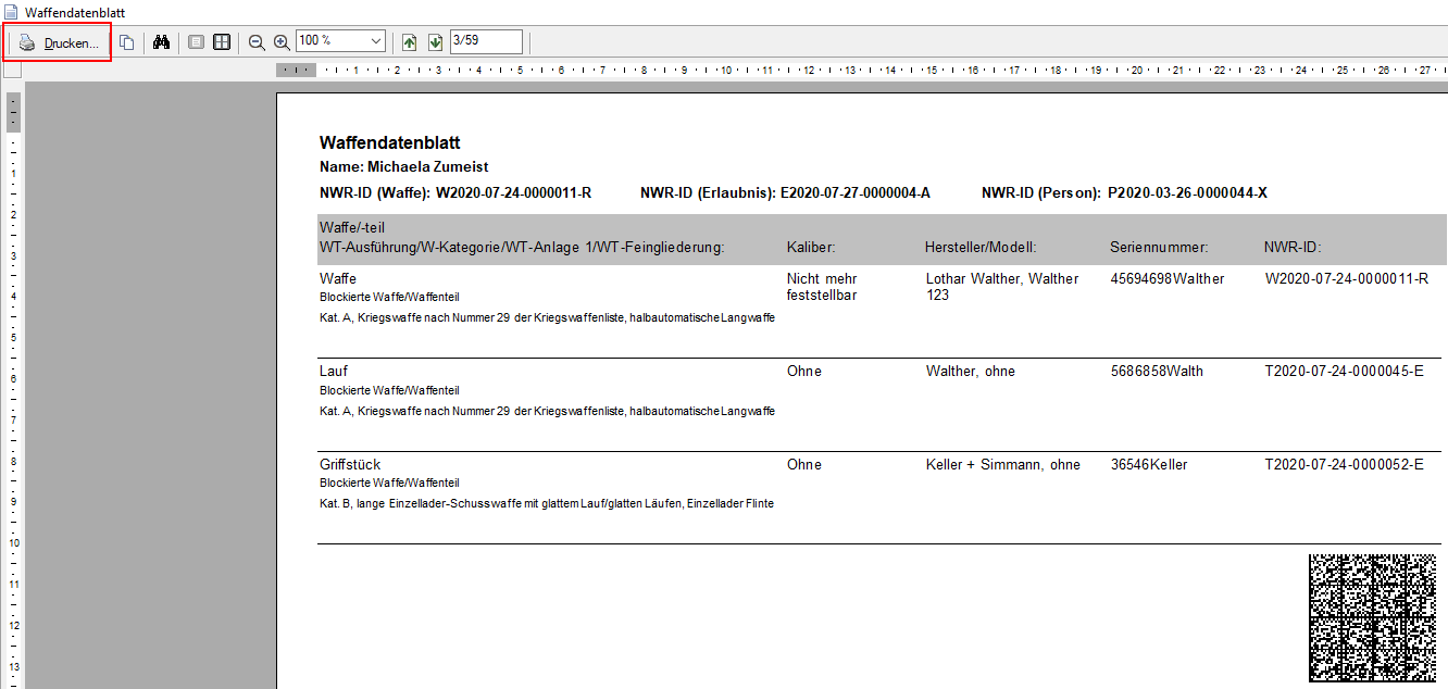 Verwenden Sie die Seriendruckfunktion, um allen Waffenbesitzer in Ihrer Zuständigkeit die ab dem 01.09.2020 für einen Waffenerwerb bzw. eine Waffenüberlassung notwendigen Detaildaten zu den aktuell im Besitz befindlichen Waffen inkl. der darin verbauten Waffen/Waffenteil-NWR-IDs mitzuteilen.