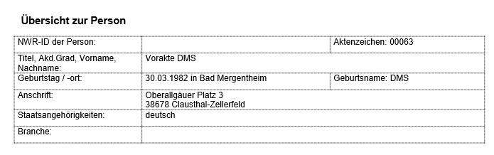 Dies können Sie überprüfen, indem Sie abschließend den Personennavigator öffnen. Unter dem Punkt "Dokument" finden Sie eine im DMS abgelegte Datei mit dem Namen "Vorakte", welche mit einem Doppelklick als .pdf-Datei geöffnet werden kann.