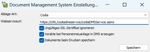 Beispiel für Codia/d.velop. Das DMS wird direkt über eine Webservice-URL angebunden: