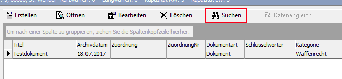 Um innerhalb des Navigatorfensters nach einem mit der Person verknüpften Dokument im Datenbestand zu suchen, klicken Sie auf die Schaltfläche [Suchen] in der über der Dokumententabelle angeordneten Menüleiste.