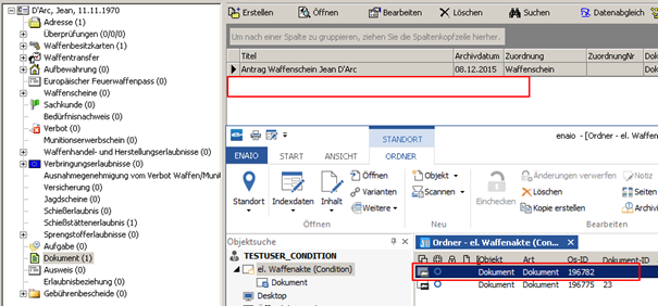 Vergleichen Sie nun die Ansicht des WorkOffice Navigators mit der elektronischen Akte der Person aus dem zentralen System von Enaio, können Sie feststellen, dass diese in WorkOffice noch nicht bekannt bzw. verknüpft ist.