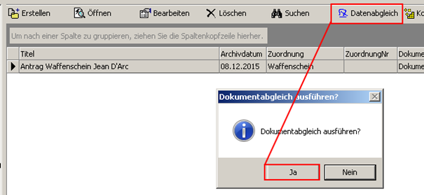 Um die Datenbestände zu synchronisieren, betätigen Sie die Schaltfläche [Datenabgleich] aus dem WorkOffice Navigator heraus und bestätigen dann mit [Ja].