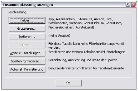 Zusammenfassung „Ansicht formatieren" enthält auch die zuvor schon angesprochen Funk-