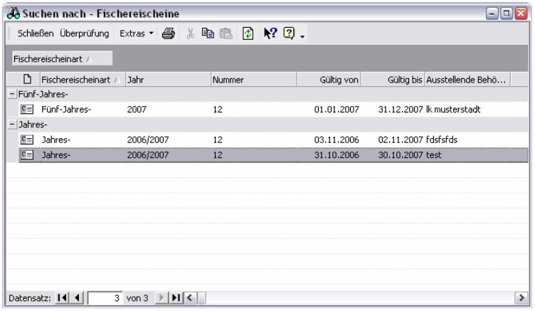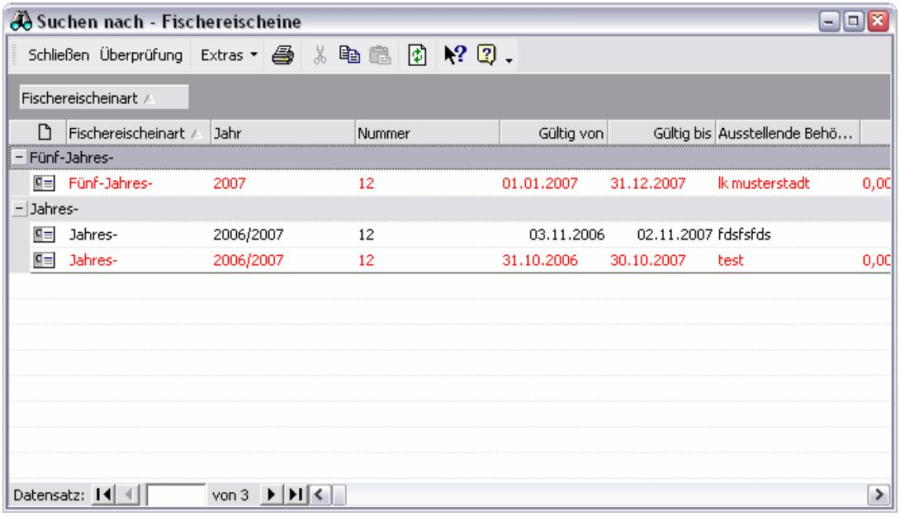 Jede im Programm dargestellte Tabelle, ob die Übersicht der Jagdscheinkategorien, einzelne