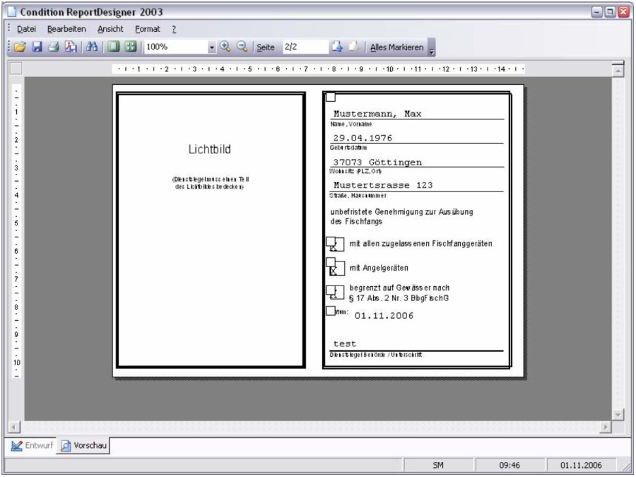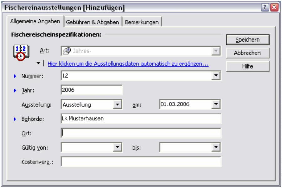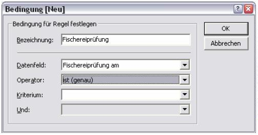 tenfeld „Fischereiprüfung am" und den Operator „ist