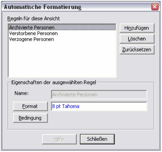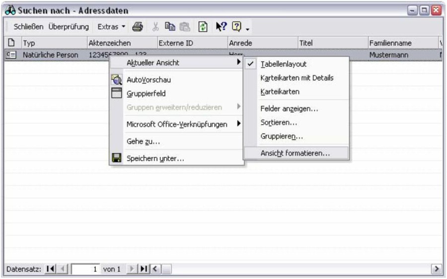 Ansicht formatieren