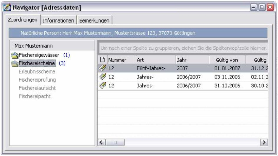 sicht der Waffenbesitzkarten im Personennavigator.