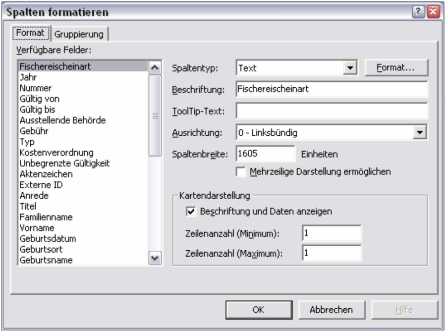 Unter dem Punkt „Spalten formatieren" können