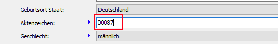 - Bei der Erfassung einer neuen Person wird ab dem Zeitpunkt der Aktivierung der automatischen Nummernvergabe die von Ihnen gewählte Zeichenfolge in das Feld "Aktenzeichen" der Person geschrieben.