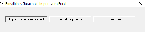 Nachdem Sie die erste Auswahl getroffen haben, öffnet sich die Importmaske Gutachten ImportJagdbezirk.