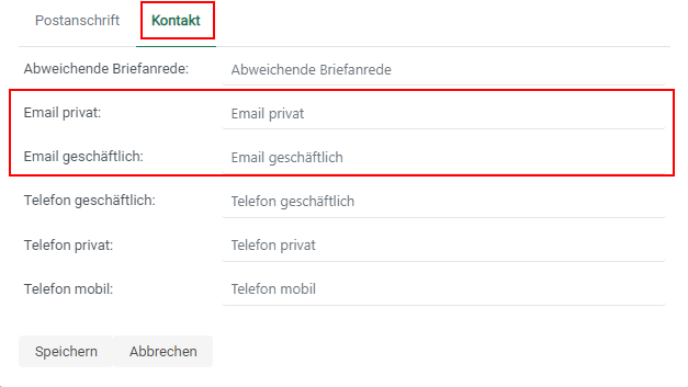 Wenn Sie alle für die gewählte Personenart notwendigen Pflichtfelder in die entsprechenden Felder der Maske eingegeben haben, klicken Sie auf die unten angeordnete Schaltfläche [Speichern]. Um die Bearbeitung abzubrechen, betätigen Sie [Abbrechen].