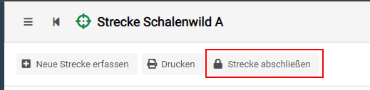 Mit einem Klick auf [Strecke abschließen] werden beide Strecken (A&B) geschlossen. Eine Bearbeitung der Strecke ist dann nur noch möglich, nachdem Ihre Untere Jagdbehörde die Strecke wieder freigegeben hat.