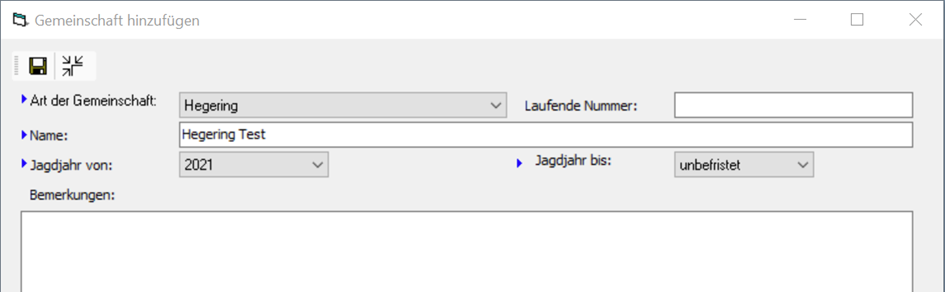 Legen Sie die Grunddaten der Gemeinschaft fest. Diese sind