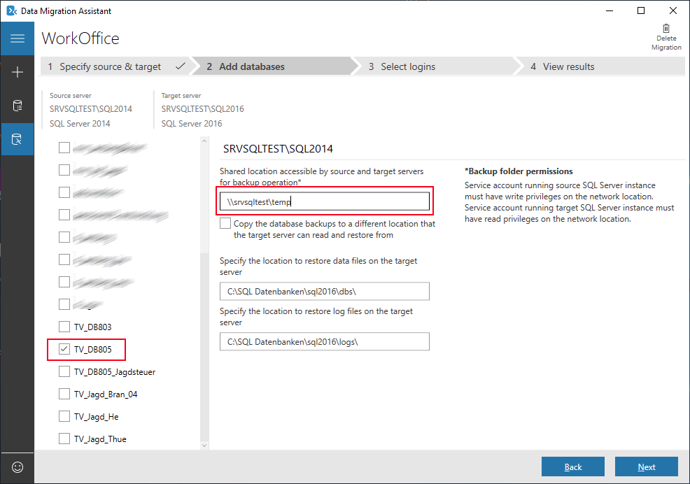 Um evtl. Sicherheitslücken zu schließen, entfernen Sie nach erfolgreicher Migration der Datenbanken die temporäre Freigabe wieder aus Ihrem Netzwerk!