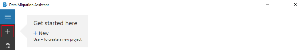 - Starten Sie den Data Migration Assistant und klicken Sie auf das links befindliche "+"-Zeichen um ein neues Migrationsprojekt zu erstellen.