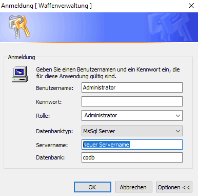 Öffnen Sie dazu das Microsoft SQL Server Management Studio (SSMS), klicken Sie mit der rechten Maustaste auf die WorkOffice Datenbank und wählen Sie aus dem Untermenü "Tasks" den Punkt "Offline schalten". - Ändern Sie in der Anmeldemaske aller WorkOffice Applikationen den "Servername" auf den FQDN des neuen SQL Servers.