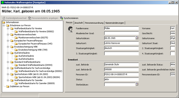 • NWR-Navigator Waffenmaske übernimmt sowohl die Waffe, als auch die übergeordneten Referenzen Erlaubnis und Person.