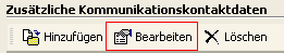 Um eine zusätzliche Kommunikationsart einer Person zu bearbeiten, öffnen Sie zuerst den gewünschten Adressdatensatz und wechseln hier auf die Karteikarte "Kommunikation". Klicken Sie anschließend auf die Schaltfläche [Bearbeiten] im unteren Bereich der Maske. Der Personendatensatz darf sich hierbei nicht im Bearbeitungsmodus befinden.