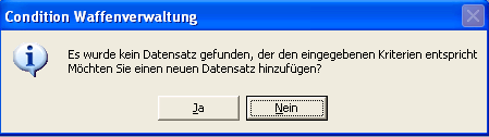 Wurde kein den Suchkriterien entsprechender Datensatz gefunden, bietet Ihnen das Programm die Möglichkeit, den neuen Datensatz direkt über den Quickfinder anzulegen. Es muss nicht zuerst die Personendatenmaske geöffnet werden. Bestätigen Sie die nachfolgende Abfrage mit [Ja], um in die Erfassungsmaske der Personendaten zu gelangen.