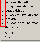 Klicken Sie auf [Nein] um die Aktion abzubrechen oder um die Suchkriterien auszuweiten bzw. zu korrigieren. Über die rechts neben dem Eingabefeld des Quickfinderes befindliche Lupe können Sie den Personenstatus um bestimmte Kriterien erweitern, nach denen der Quickfinder das Suchergebnis eingrenzt. Eine Person kann bspw. durchaus in der Datenbank vorhanden sein und einen "inaktiven" Status besitzen.