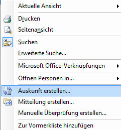 Um von den selektieren Personen in den Transfer-Assistenten zu gelangen bietet ihnen die Registerauskunft zwei Möglichkeiten an. Zum einen können sie die markierten Personen mit der rechten Maustaste anklicken und dann über den Punkt „Auskunft erstellen“ den Assistenten aufrufen.