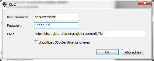 Die Standard Kommunikationsadresse ist in der Basisinstallation der Registerauskunft bereits vorgegeben. Verändern sie das Feld „URL“ bitte nur nach vorheriger Absprache mit unserer Kundenbetreuung.