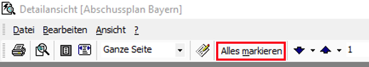 Es öffnet sich die Detailansicht für den Druck des Abschussplans. Mit einem Klick auf die Schaltfläche [Alles markieren] in der Menüleiste werden sämtliche Haken (Druckbereiche) auf allen Seiten gesetzt.