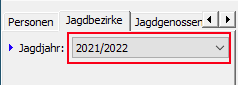 Bitte vergewissern Sie sich stets, dass ein aktuelles/korrektes Jagdjahr in der Jagdverwaltung unter dem Reiter „Jagdbezirke“ eingestellt ist.
