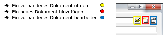 Um ein Dokument neu hinzufügen bzw. zu erstellen, klicken Sie auf den Button [Erstellen]. Gekennzeichnet ist dieser durch das „Ordnersymbol“.