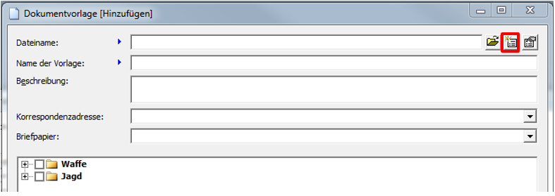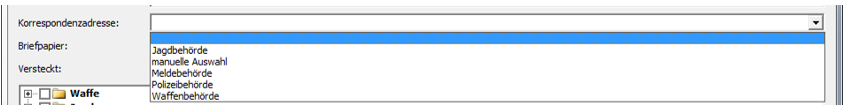 Waffenbehörde | Befüllt automatisch die Textmarkenfelder „Adresszeile1-6“ mit der anhand des Kreisgemeindeschlüssels ermittelten zuständigen Jagdbehörde. |