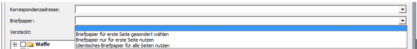 Briefpapier nur für erste Seite nutzen | Nur das in den Briefpapieroptionen für jeden Anwender im Bereich „Briefpapier Seite 1“ hinterlegte Dokument, wird für Korrespondenzschreiben auf der ersten Seite herangezogen. |