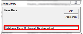 - Im nächsten Fenster vergeben Sie für die neue Vorlage einen eindeutigen Namen, z. B. „Karteikarte_PersonHochformat_Benutzerdefiniert“ und bestätigen die Eingabe anschließend mit [OK]