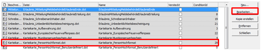 Wenn Sie eine von der Firma Condition vordefinierte Vorlagendatei bearbeiten möchten, gehen Sie bitte wie folgt vor:
