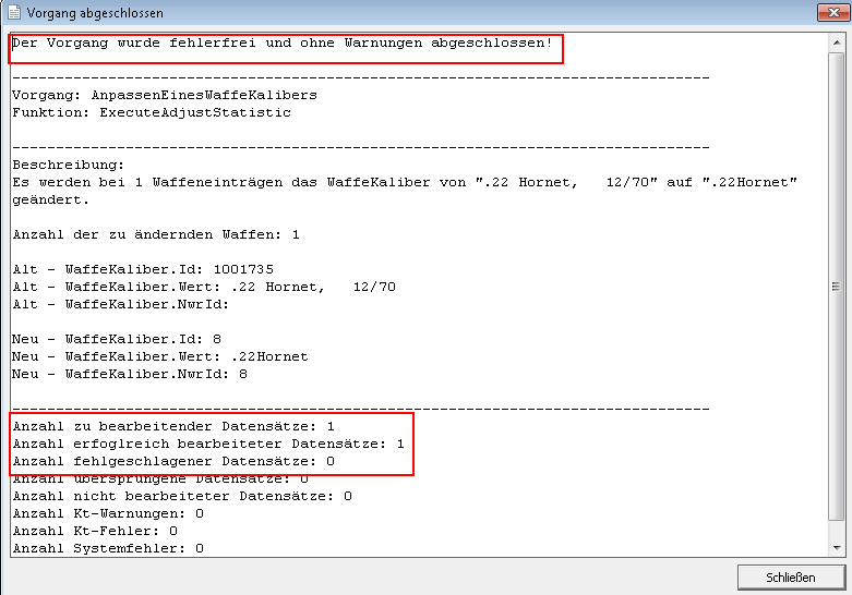 Im Rahmen dieser Korrektur werden alle Waffen, welche das zur Korrektur ausgewählte Kaliber verwenden, durch das neu gesetzte Kaliber bereinigt.