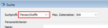 2. Wechseln Sie in der Maske auf das Suchprofil "Person/Waffe".