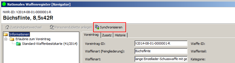 Durch einen Zuständigkeitswechsel nicht in den lokalen Datenbestand gelangte Waffenvoreinträge können nun mit Hilfe des „NWR Navigators" synchronisiert werden.