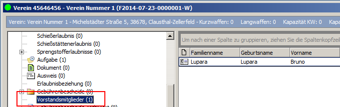 Alle einem Verein oder einer Jagdgenossenschaft zugeordneten Vorstandsmitglieder sind ab sofort über den Punkt „Vorstandsmitglieder" im Navigator einsehbar. Eine umgekehrte Ansicht erscheint in der Navigatoransicht der zugeordneten natürlichen Person<ac:structured-macro ac:name="anchor" ac:schema-version="1" ac:macro-id="e73623b0-682c-4ed3-bdda-fdb3bb53031f"><ac:parameter ac:name="">_GoBack</ac:parameter></ac:structured-macro> unter dem Punkt „Vorstandsmitgliedschaft".