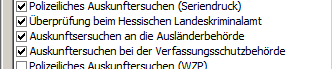 Prüfung auf Registereintragungen Beim Ausstellen einer neuen Waffenbesitzkarte oder beim Hinzufügen einer neuen Waffe auf diesen Erlaubnistyp erfolgt nun eine detailierte Prüfung auf vorhandene Eintragungen in bisherigen Registerantworten, das Alter der Überpfrüfung (6 Monate und länger) und das generelle Vorhandensein einer Regelüberprüfung zur Person.