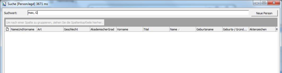 Suche nach Personen Die Suche „PersonenJagd" wurde um die Möglichkeit erweitert, nach dem Familiennamen Komma Vornamen suchen zu können.