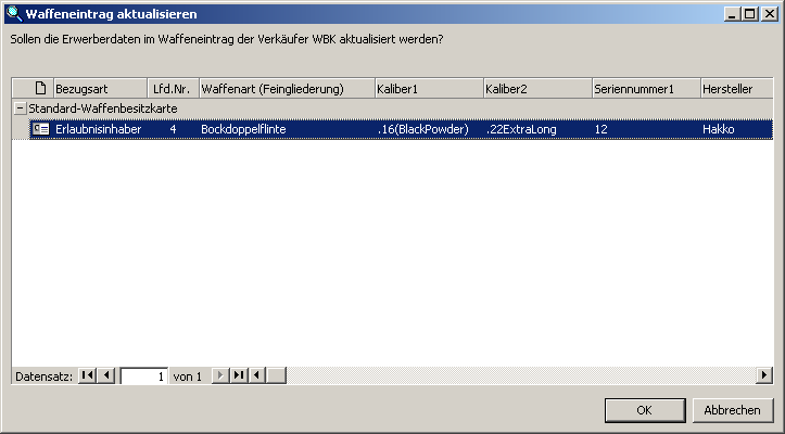 Aktualisierung von Waffendaten beim Vorbesitzer bei Waffenaustragung