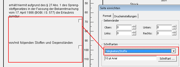 - Der Bereich für Tätigkeiten und Stoffe kann in der Detailansicht der Erlaubnis nach SP27 mit einer separaten Schriftgröße belegt werden.