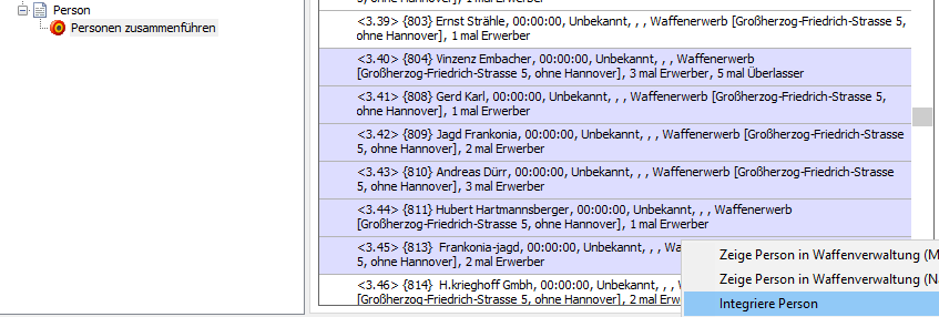 Über die rechte Maustaste können Sie das im unteren Bereich der Maske dargestellte Suchergebnis, abhängig vom verwendeten „Suchprofil", in der Personen-, Erlaubnis- oder Waffenmaske zur weiteren Bearbeitung öffnen.