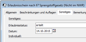 Sprengstofferlaubnis nach §7Eine Änderung des Statusdatums führt nicht mehr zu einer gleichzeitigen Änderung des Ausstellungsdatums der Erlaubnis.
