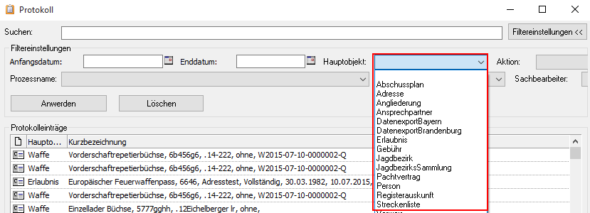 Protokollierung von Datensatzänderungen Um die Übersicht im Bereich „Filtereinstellungen" zu verbessern, wurden die Auswahlfelder in der Breite modifiziert, so dass nun die vollständigen Feldwerte dargestellt werden können. Darüber hinaus erfolgt die Sortierung der Daten alphabetisch.
