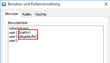 Inaktive Benutzer werden nun ihrem Status entsprechend mit einem Zusatz „inaktiv", „gesperrt" oder „abgelaufen" angezeigt.
