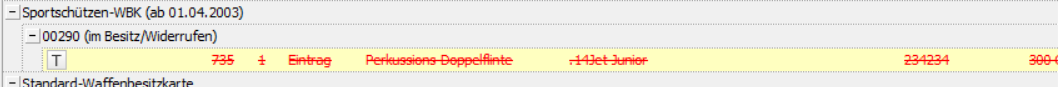 Befinden sich noch aktive Waffen auf der widerrufenen Waffenbesitzkarte, erscheinen diese im Personennavigator in roter Schrift - eine Korrektur durch den Sachbearbeiter steht in diesem Fall noch aus.