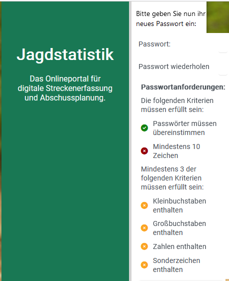 Benutzer der Jagdstatistik können ihr Kennwort auf einem mobilen Gerät (Handy oder Tablet) oder in Verbindung mit einer geringen Bildschirmauflösung auf einem Desktop-PC bzw. Notebook nicht zurücksetzen.